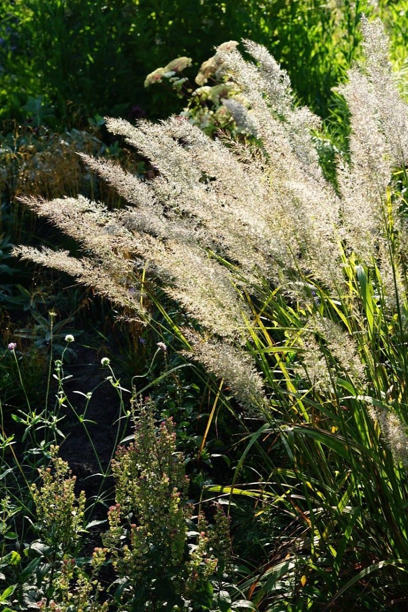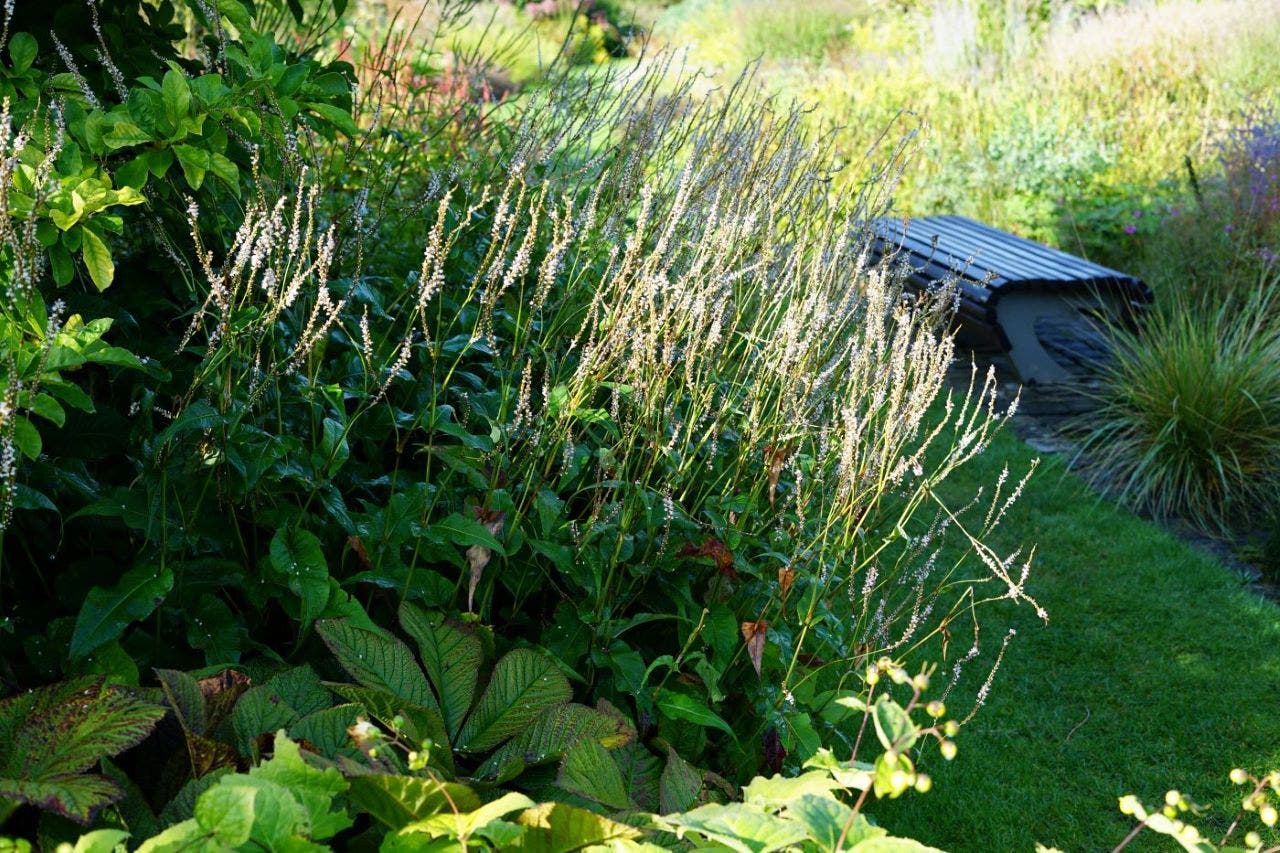In dieser Jahreszeit wird das Licht wunderschön von den Pflanzen eingefangen. Die Ziergräser leuchten richtig auf. Die Kombination aus üppig blühenden Stauden mit Pflanzen, die bereits verblüht sind, aber deren Struktur und Form noch deutlich sichtbar ist, ist schön anzusehen und sorgt für eine wunderschöne Atmosphäre.